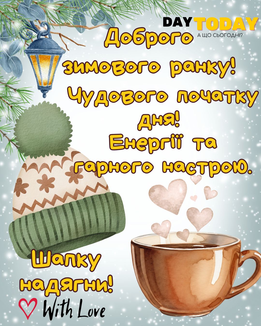 Чи це буде чашка ароматної кави, яка зарядить вас бадьорістю духу, чи усміхнене сонечко, що пробуджує до нових досягнень – у нас є картинки на будь-який смак. Ви можете надіслати листівку одразу у Facebook, або завантажити картинку і надіслати будь-яким зручним способом. Наші листівки абсолютно безплатні для некомерційного використання.