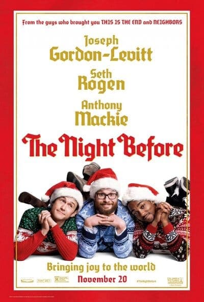 The Night Before (2015) – Троє друзів, які зберегли святкову традицію безумних різдвяних пригод, вирішують, що ця ніч стане їхньою останньою грандіозною вечіркою. Кумедна комедія про дружбу і святковий хаос. Не для перегляду з дітьми. IMDB: 6.4