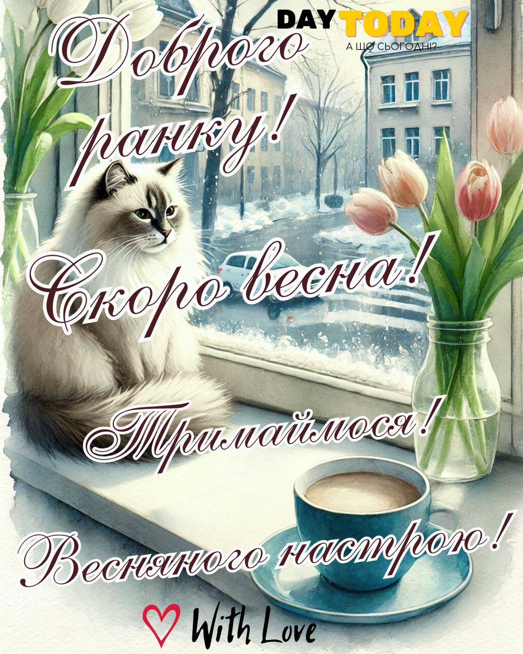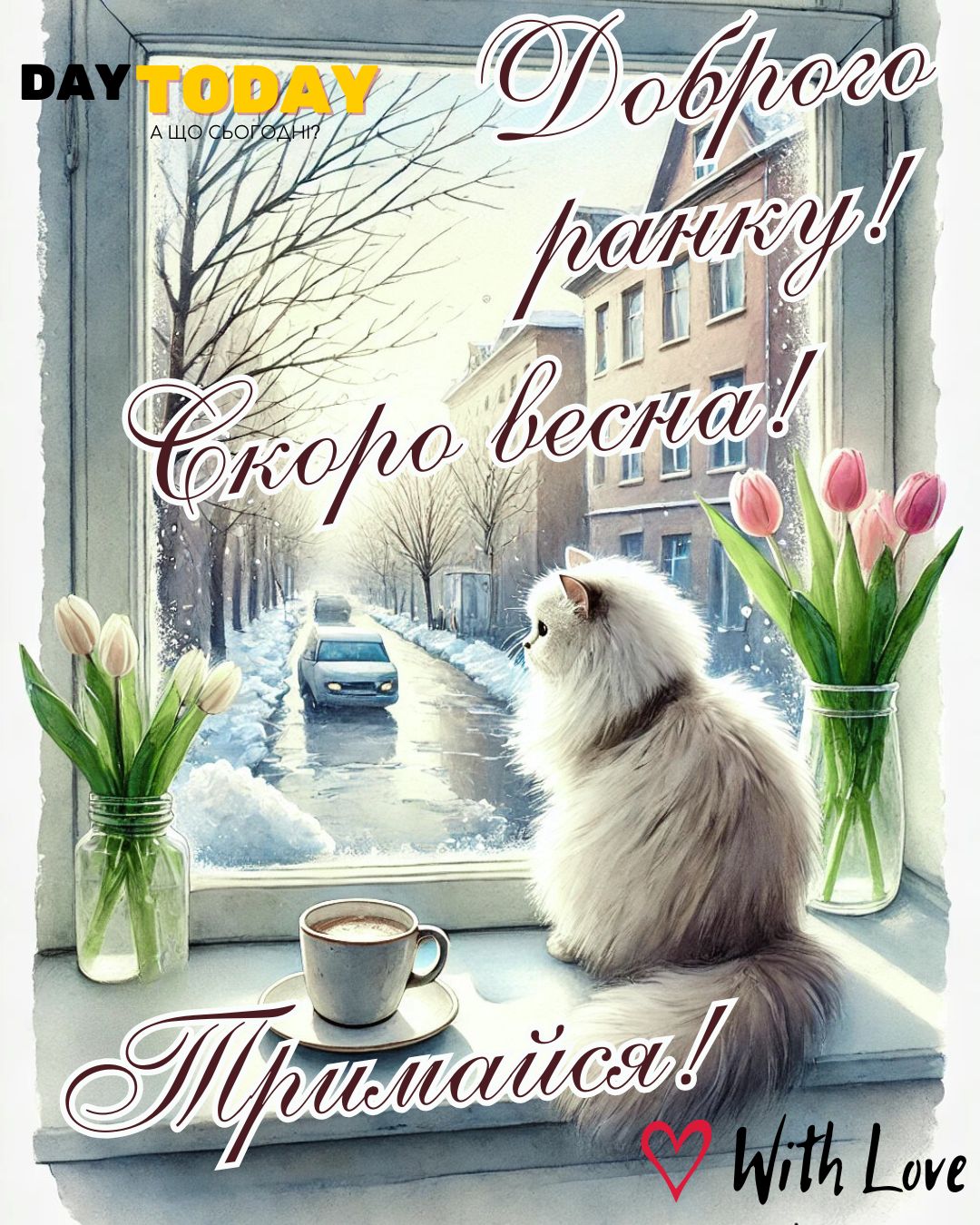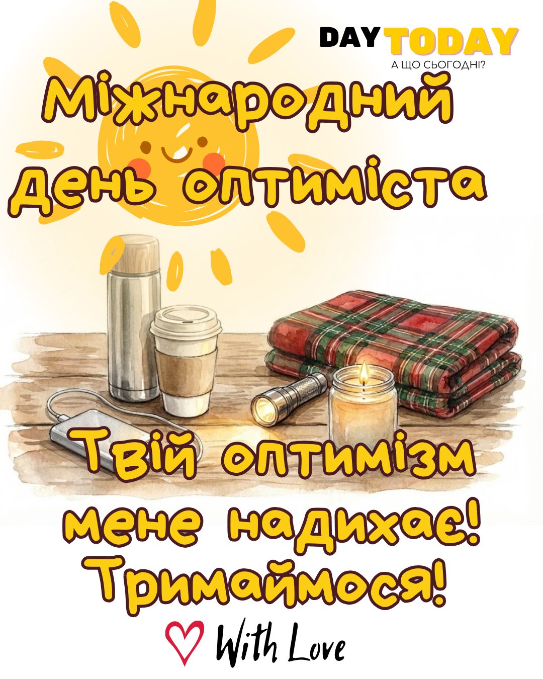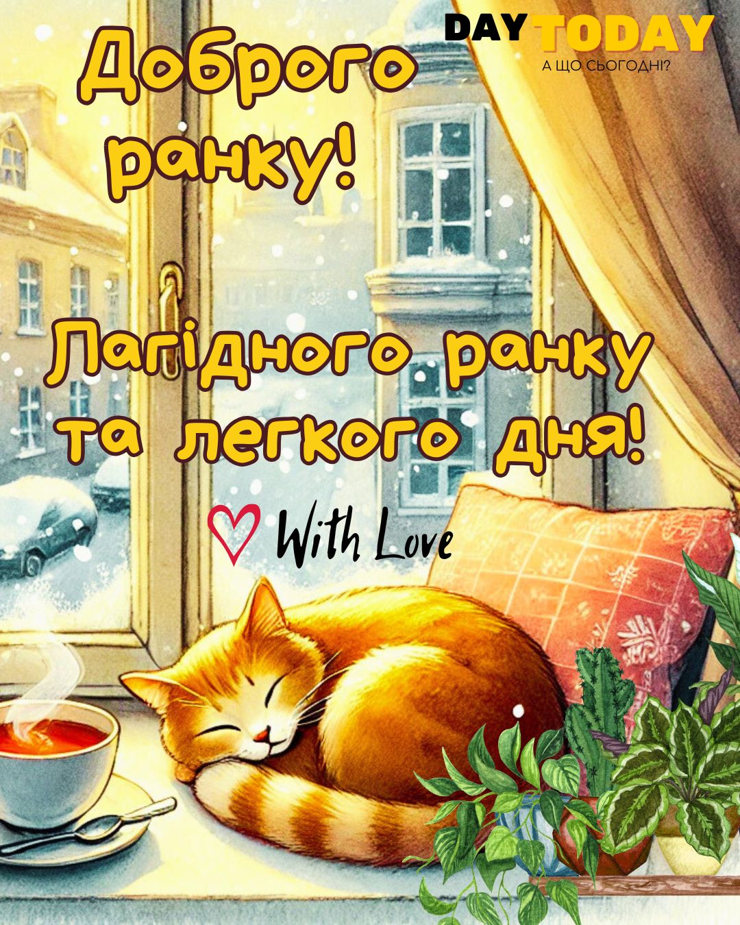 DAY TODAY листівки – найзатишніший каталог листівок українською мовою. Ми щодня створюємо нові теплі листівки та картинки, аби ви могли привітати своїх рідних та близьких в будь-яких соцмережах та месенджерах. Тисячі користувачів в Вайбері та Телеграмі вже отримали наші листівки.