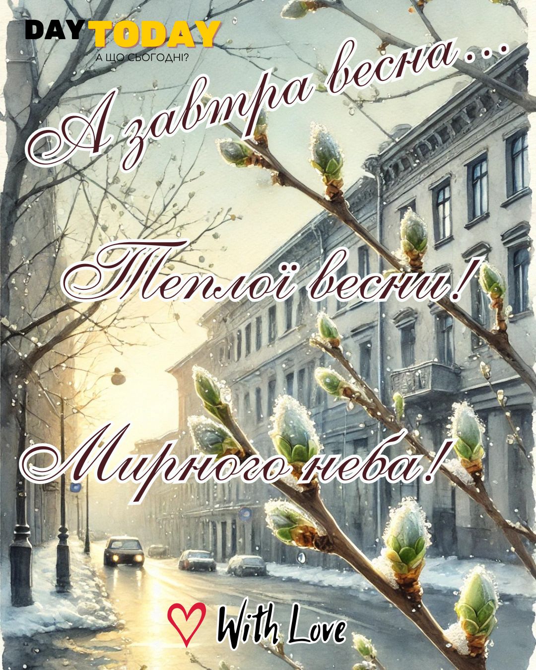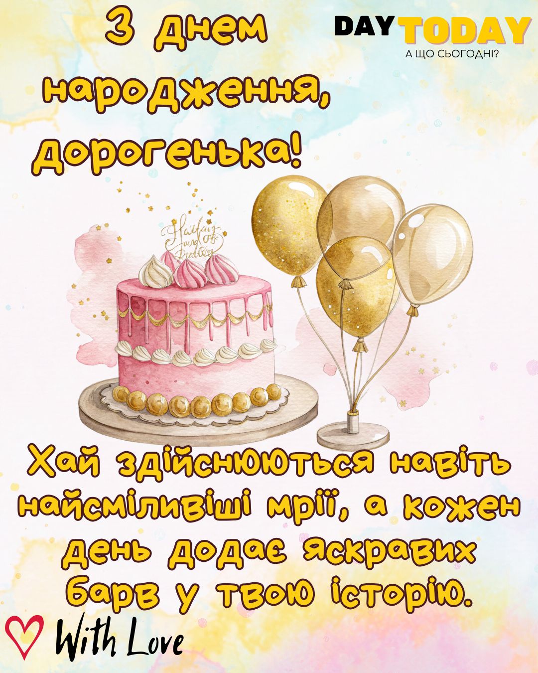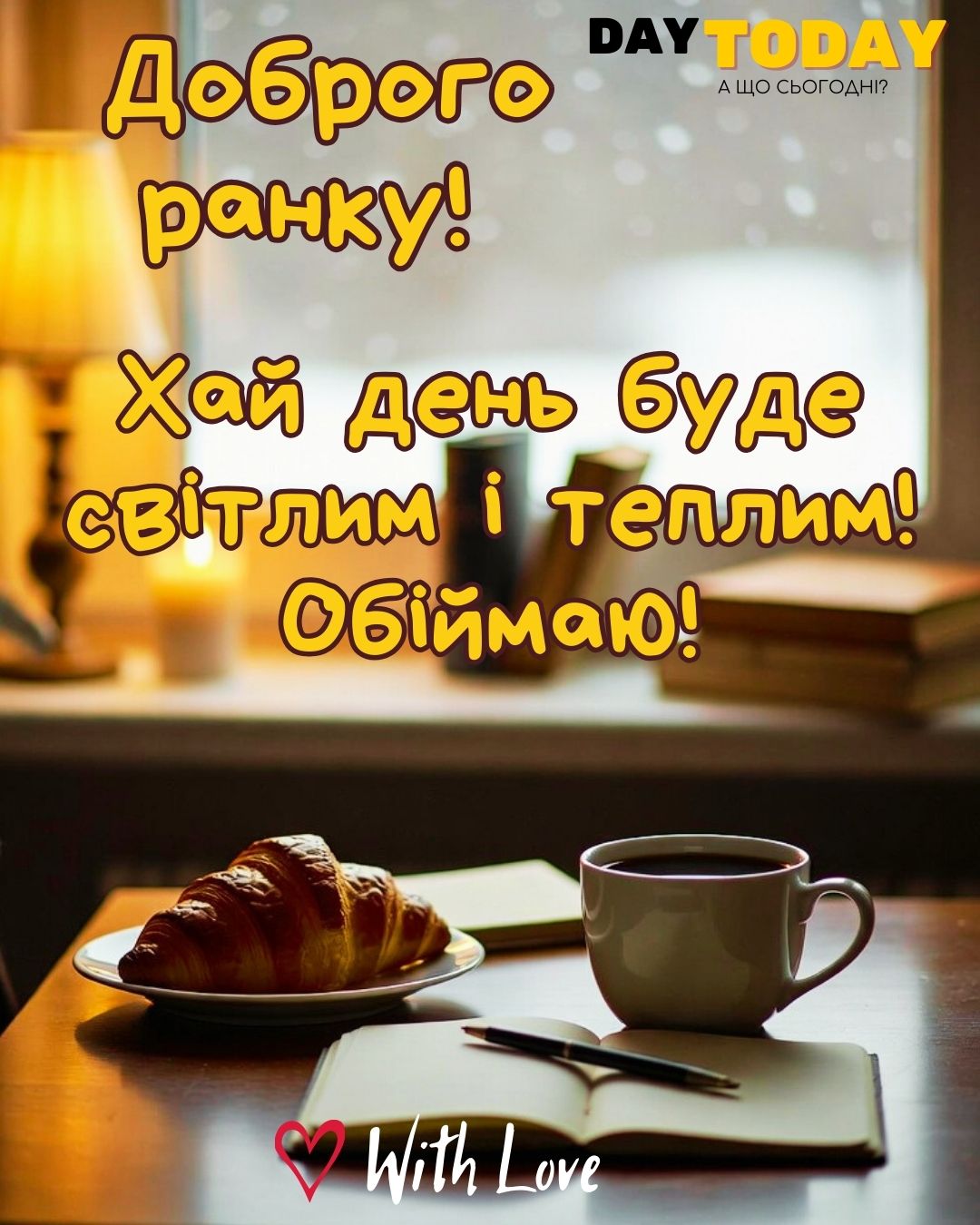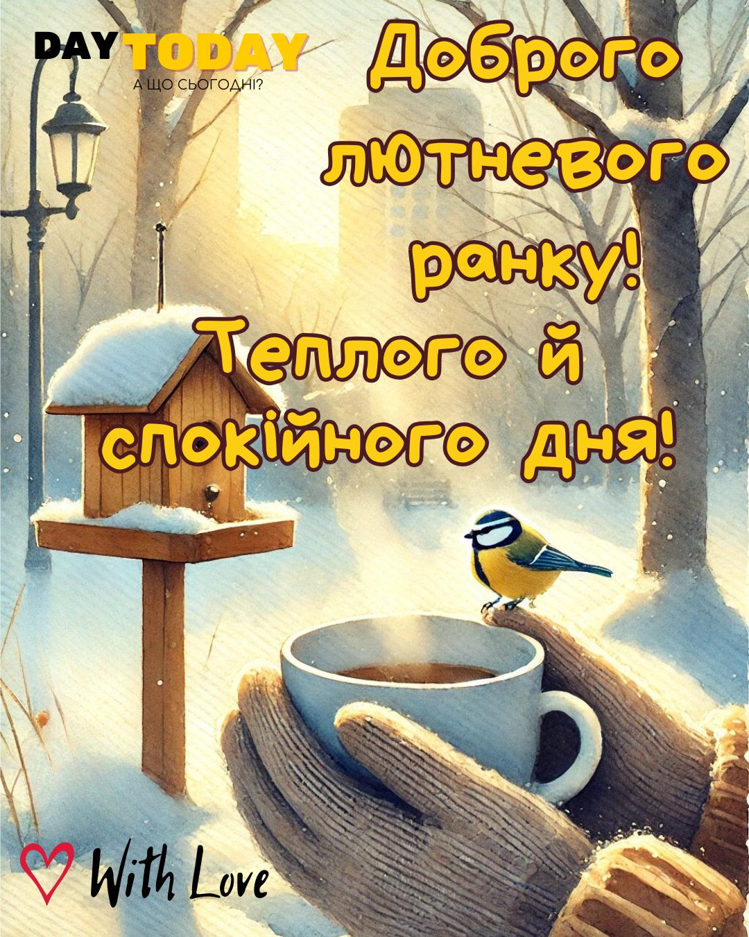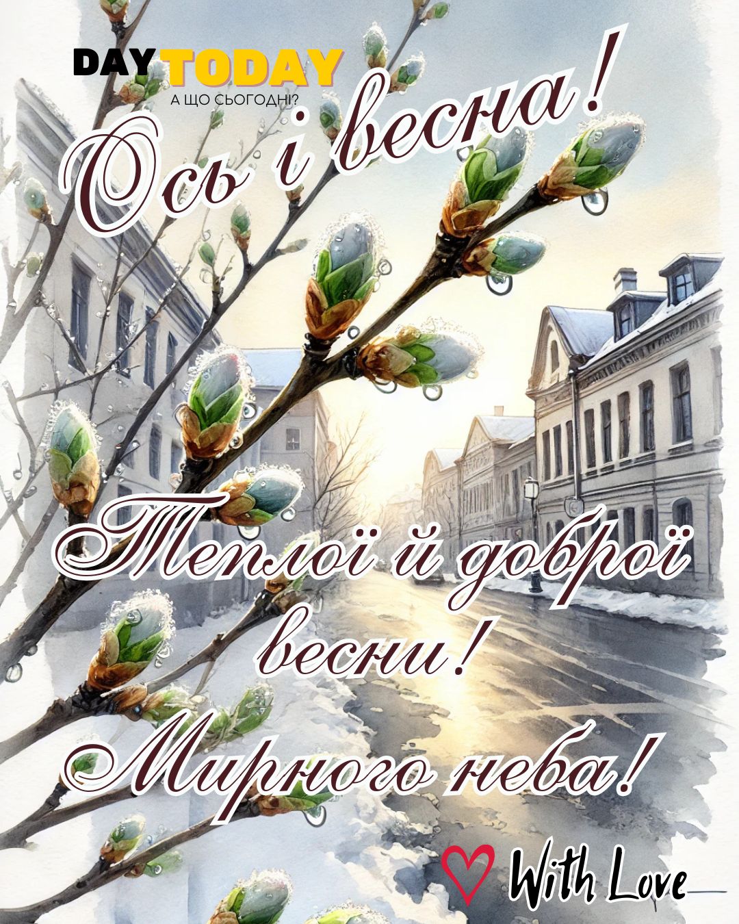 DAY TODAY листівки – найзатишніший каталог листівок українською мовою. Ми щодня створюємо нові теплі листівки та картинки, аби ви могли привітати своїх рідних та близьких в будь-яких соцмережах та месенджерах. Тисячі користувачів в Вайбері та Телеграмі вже отримали наші листівки.