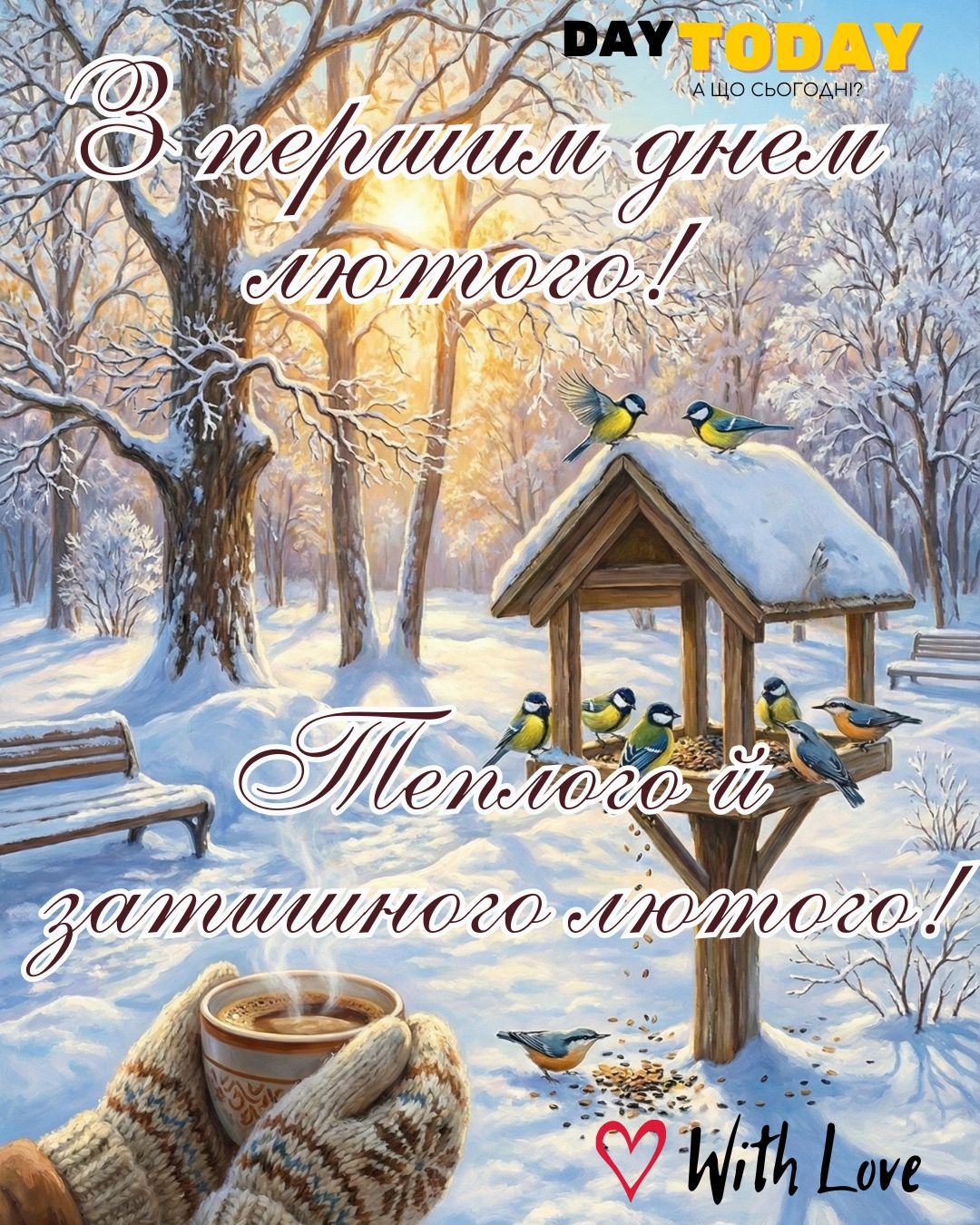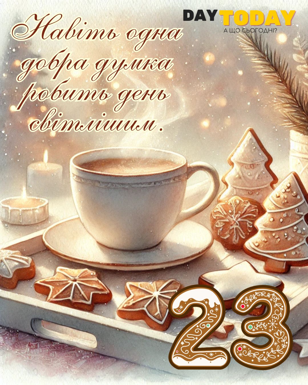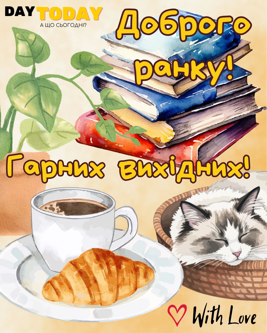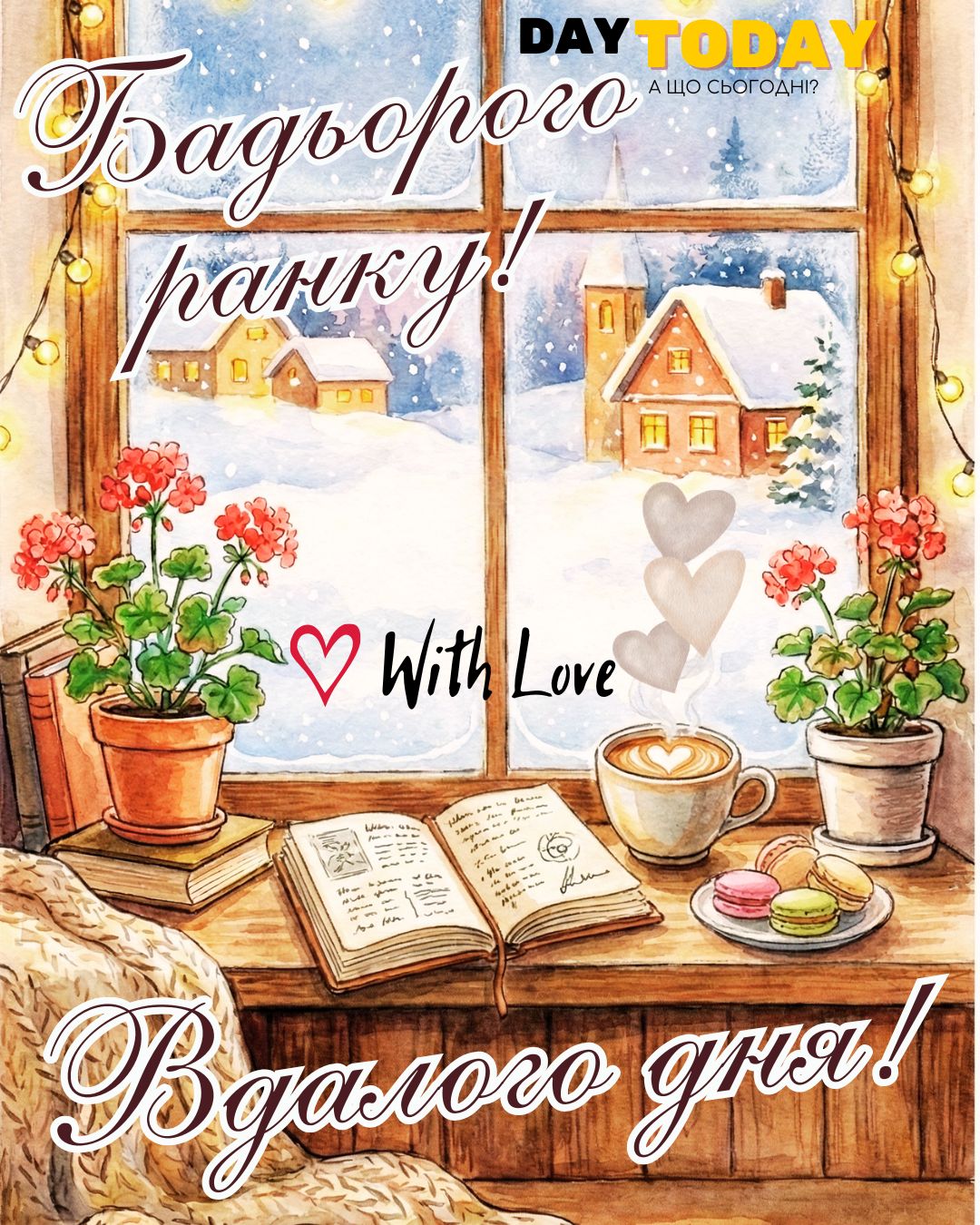 DAY TODAY листівки – найзатишніший каталог листівок українською мовою. Ми щодня створюємо нові теплі листівки та картинки, аби ви могли привітати своїх рідних та близьких в будь-яких соцмережах та месенджерах. Тисячі користувачів в Вайбері та Телеграмі вже отримали наші листівки.