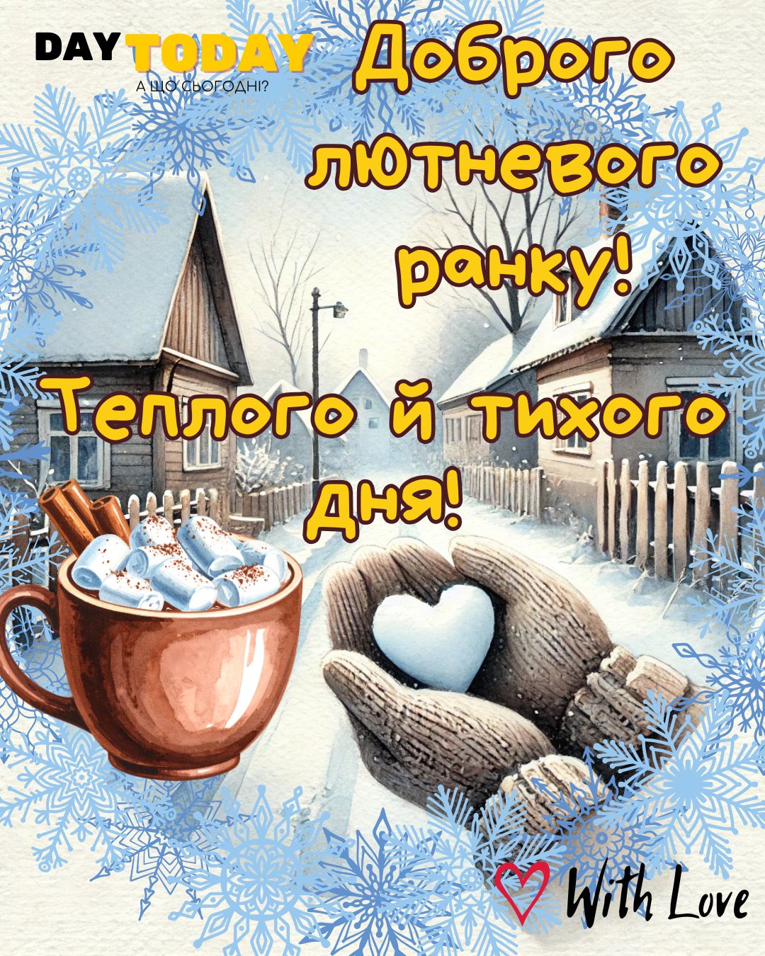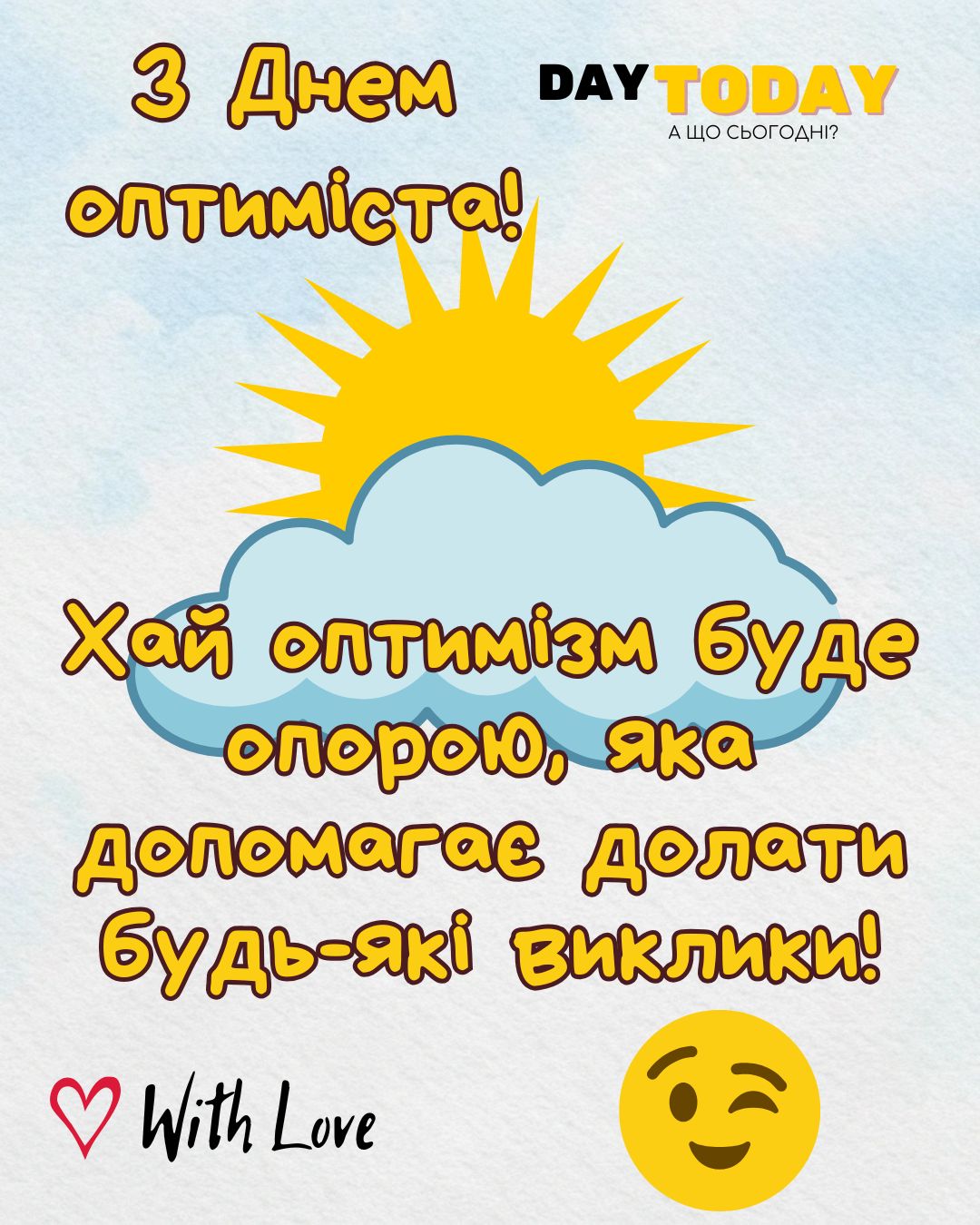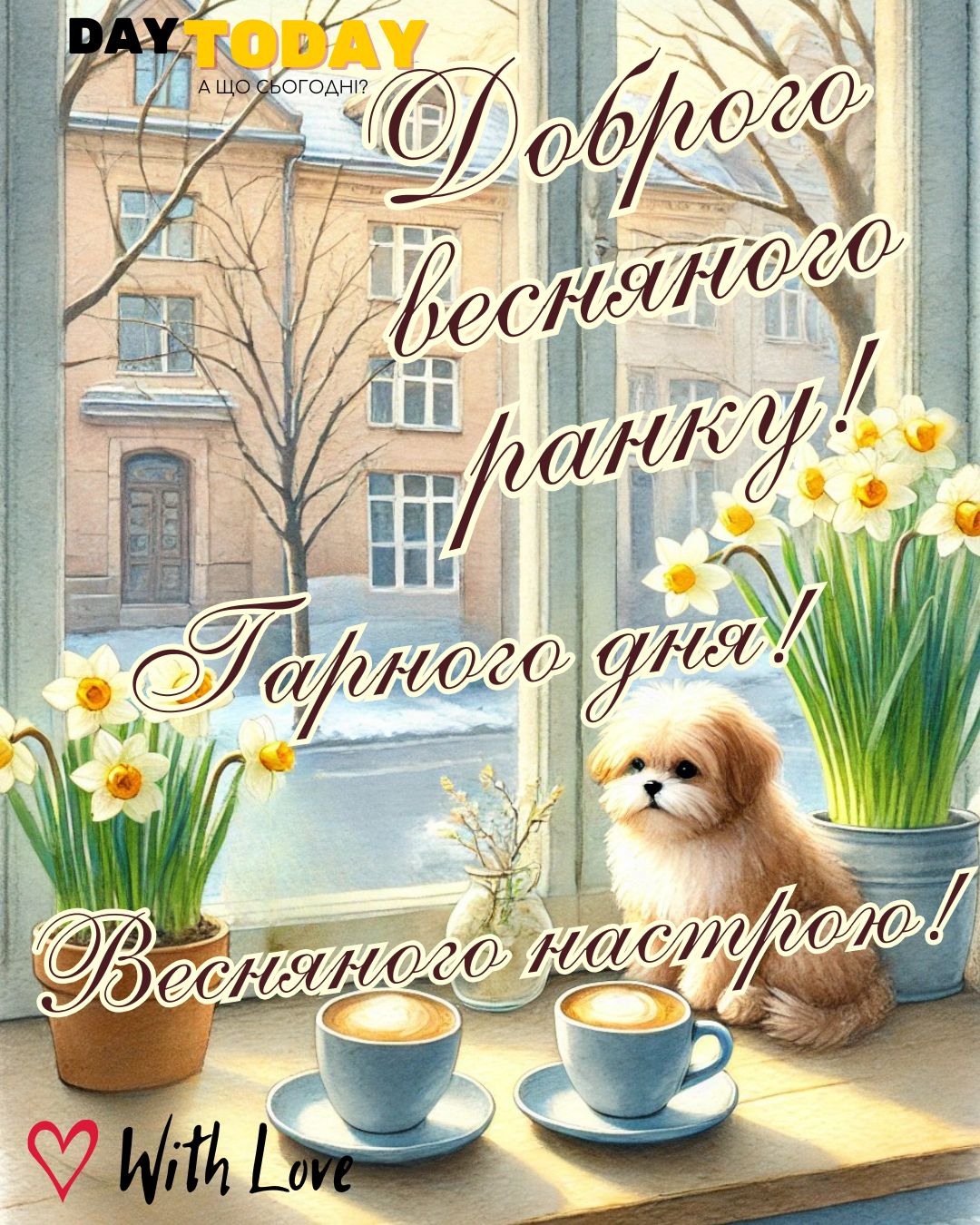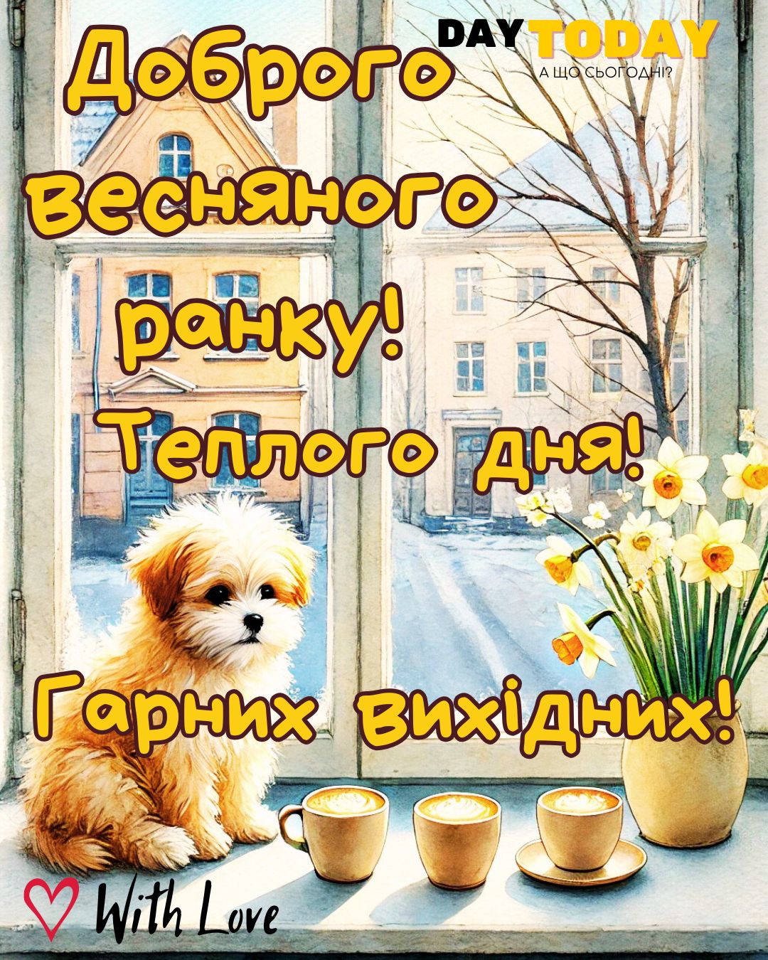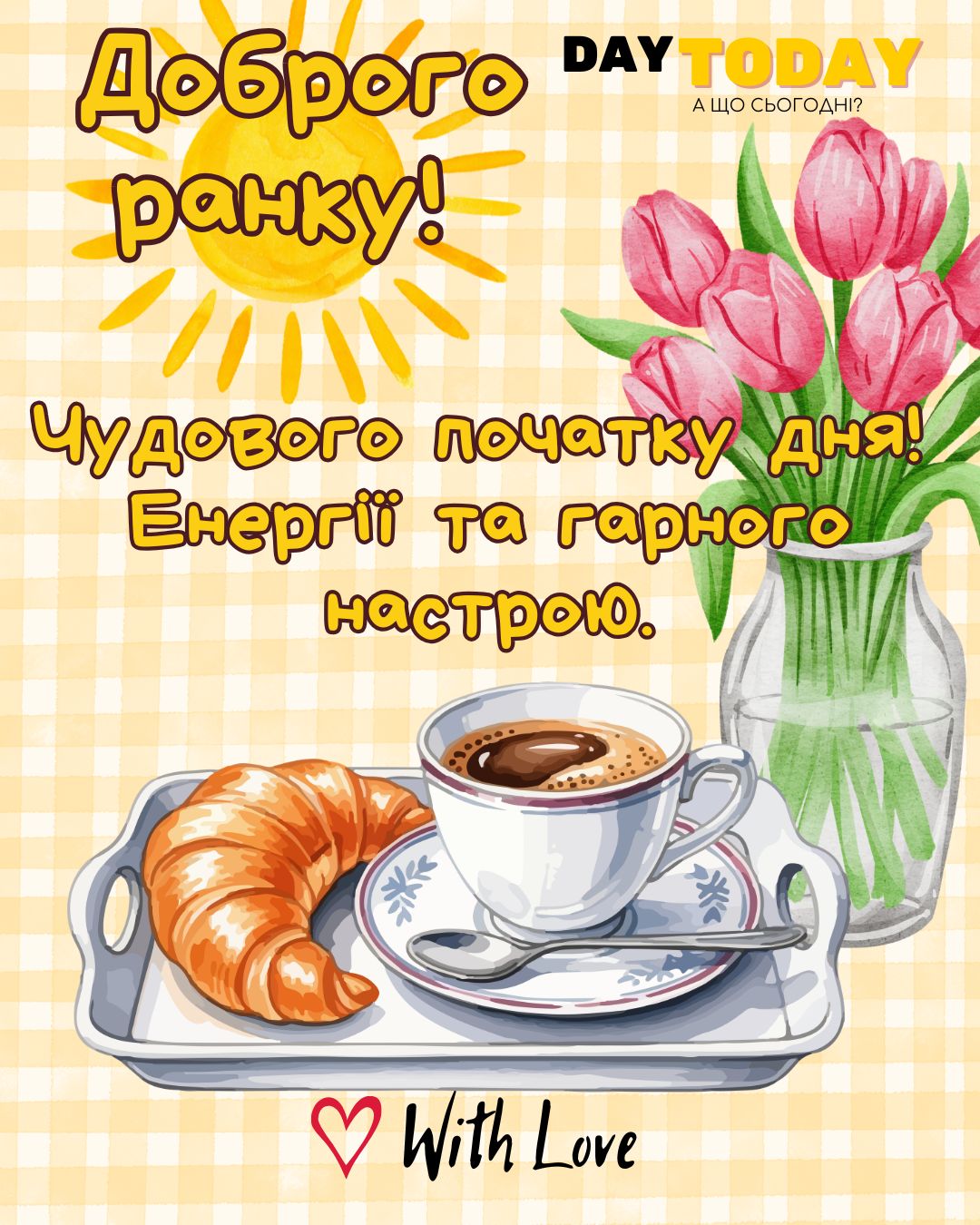 DAY TODAY листівки – найзатишніший каталог листівок українською мовою. Ми щодня створюємо нові теплі листівки та картинки, аби ви могли привітати своїх рідних та близьких в будь-яких соцмережах та месенджерах. Тисячі користувачів в Вайбері та Телеграмі вже отримали наші листівки.