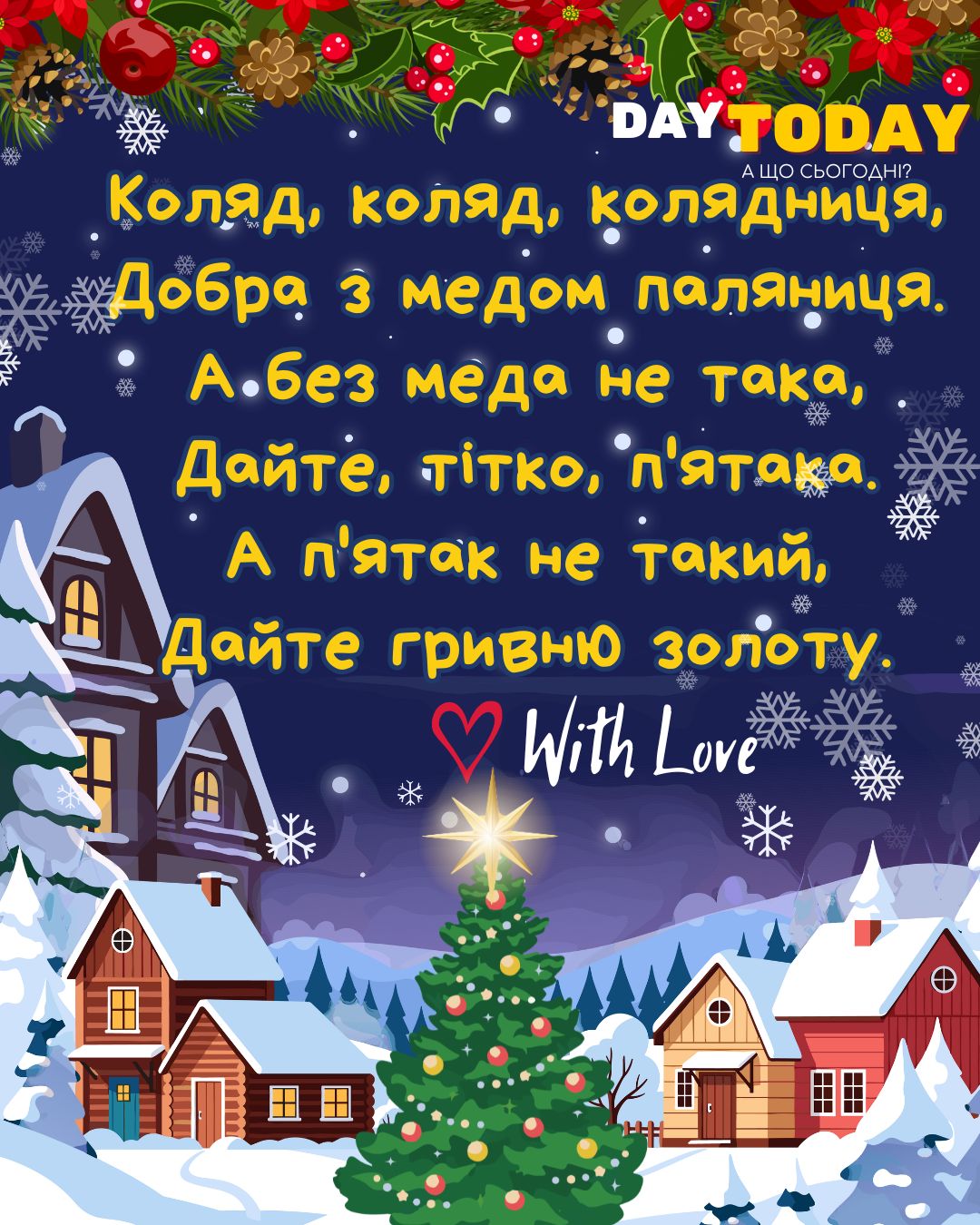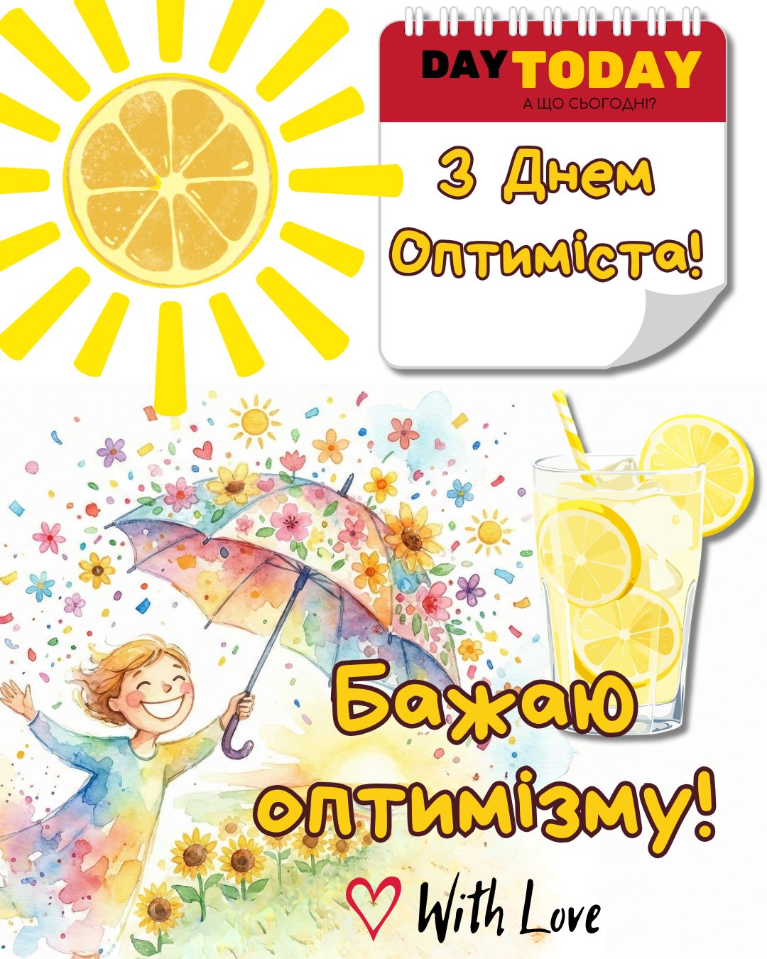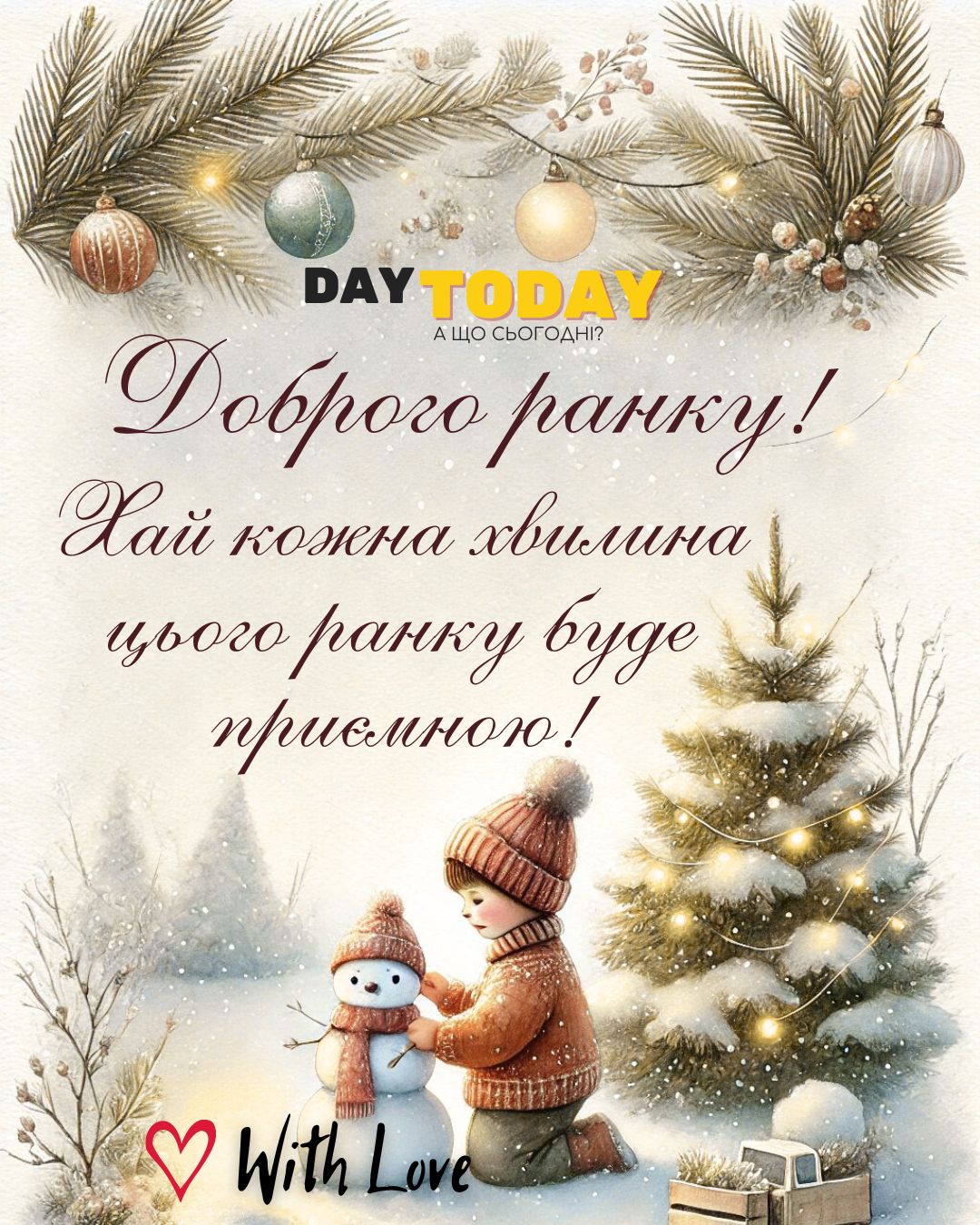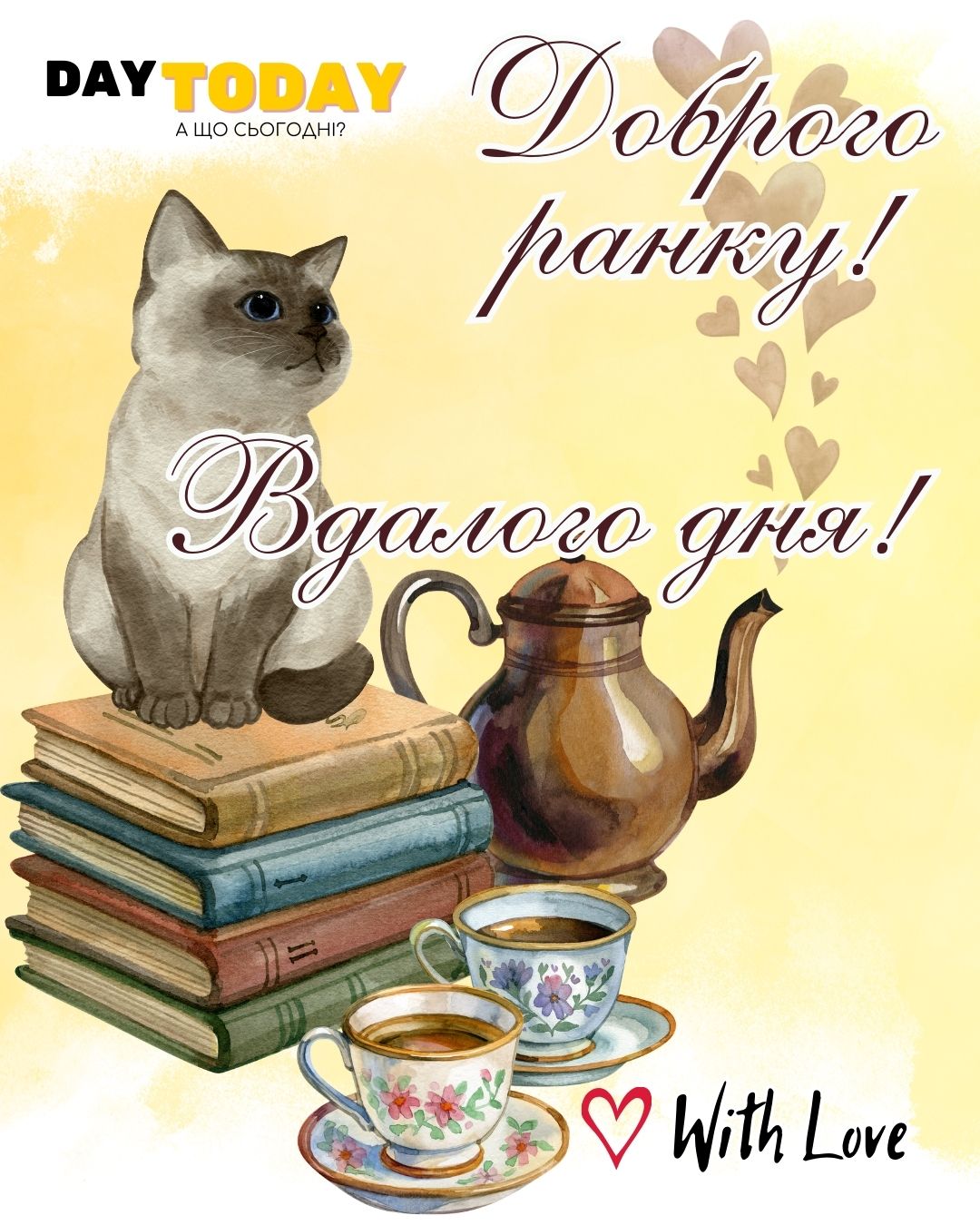 DAY TODAY листівки – найзатишніший каталог листівок українською мовою. Ми щодня створюємо нові теплі листівки та картинки, аби ви могли привітати своїх рідних та близьких в будь-яких соцмережах та месенджерах. Тисячі користувачів в Вайбері та Телеграмі вже отримали наші листівки.