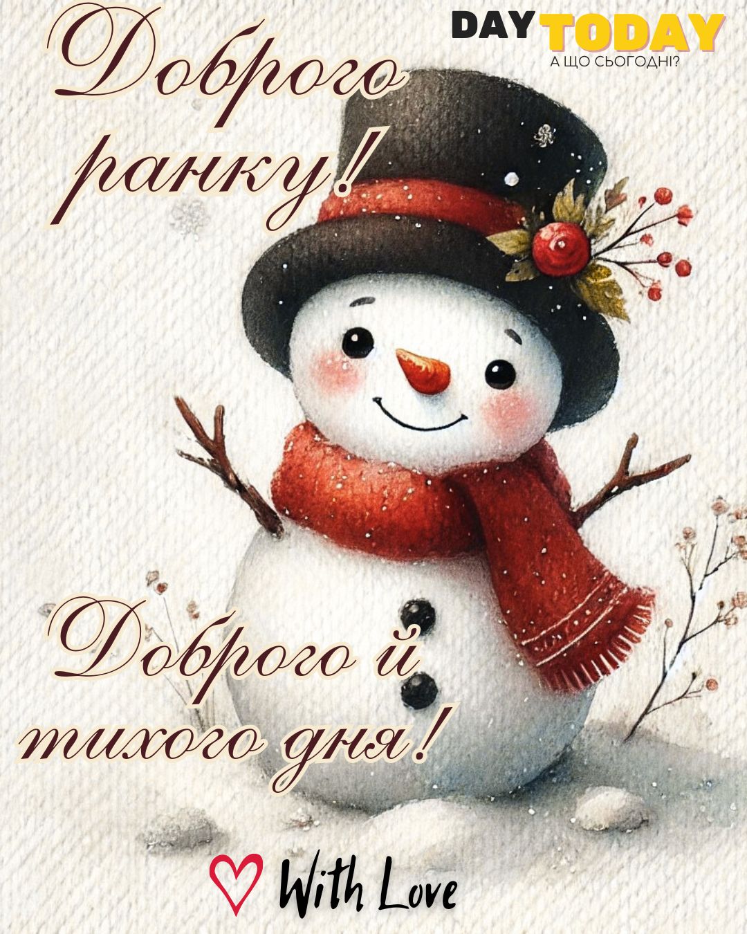 DAY TODAY листівки – найзатишніший каталог листівок українською мовою. Ми щодня створюємо нові теплі листівки та картинки, аби ви могли привітати своїх рідних та близьких в будь-яких соцмережах та месенджерах. Тисячі користувачів в Вайбері та Телеграмі вже отримали наші листівки.