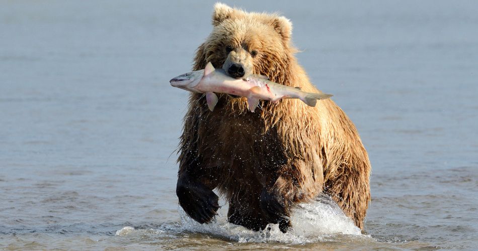 Бурі ведмеді в Алясці ласують лососем, ловлячи його прямо з повітря.