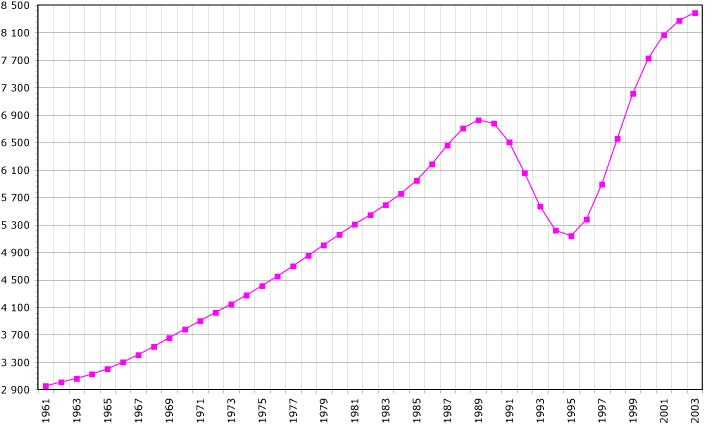 На фото: Графік кількості населення Руанди у 1961—2003
