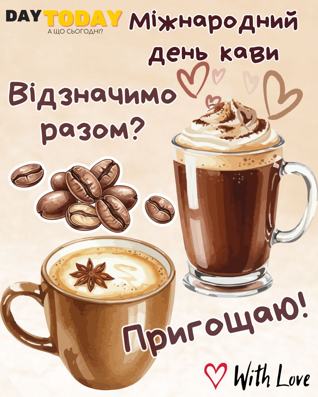 Листівки та привітання до Дня кави